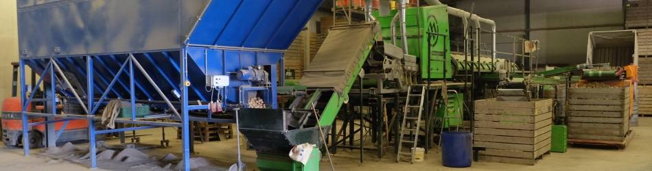 Veel pootaardappelen worden verpakt in jute zakken. Hiervoor hebben we de beschikking over een ERC Baxmatic, een volautomaat die de zakken automatisch onder de afweger plaatst. Voor de afweger is er mogelijkheid tot nalezen zodat de kwaliteit van het product ten alle tijden aan de kwaliteitseisen voldoet. De Baxmatic is geschikt voor zakken met een inhoud van 5 tot 50kg. De machine vult de zak, naait deze dicht en voorziet het van een label of lint. Naast jute zakken worden ook poly bandbalen gevuld door de Baxmatic. Voor gewone poly zakken is een lijn van de Lignie beschikbaar die uit rol zakken snijdt die daarna gevuld worden.